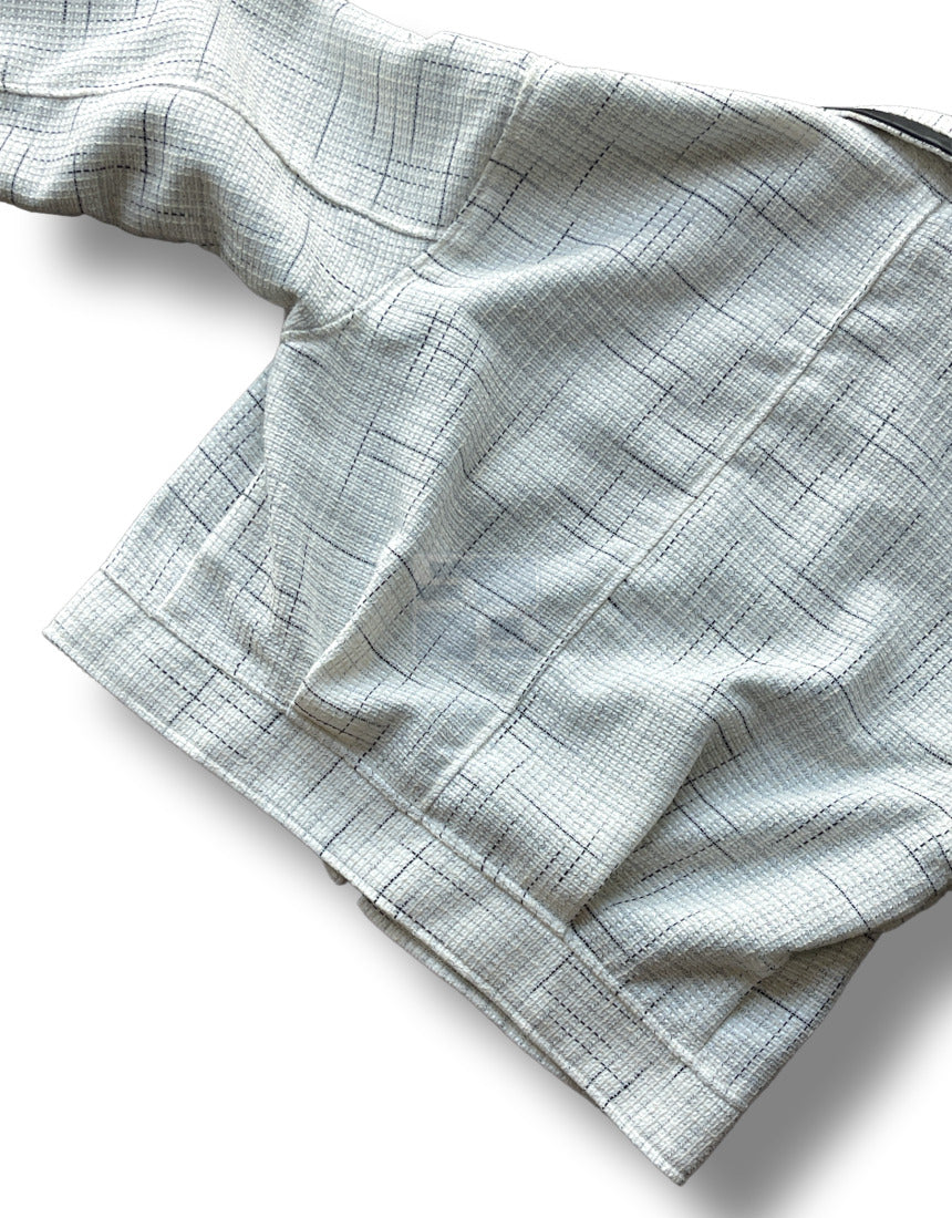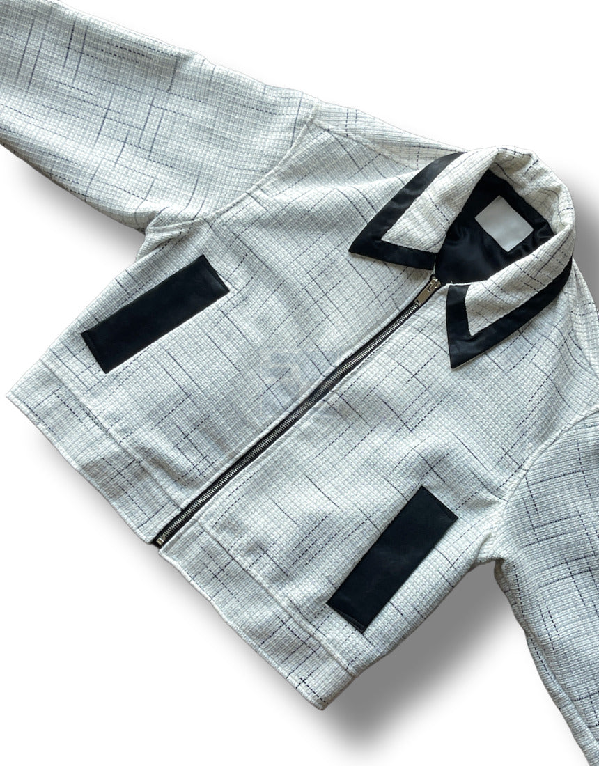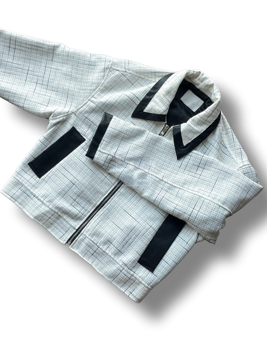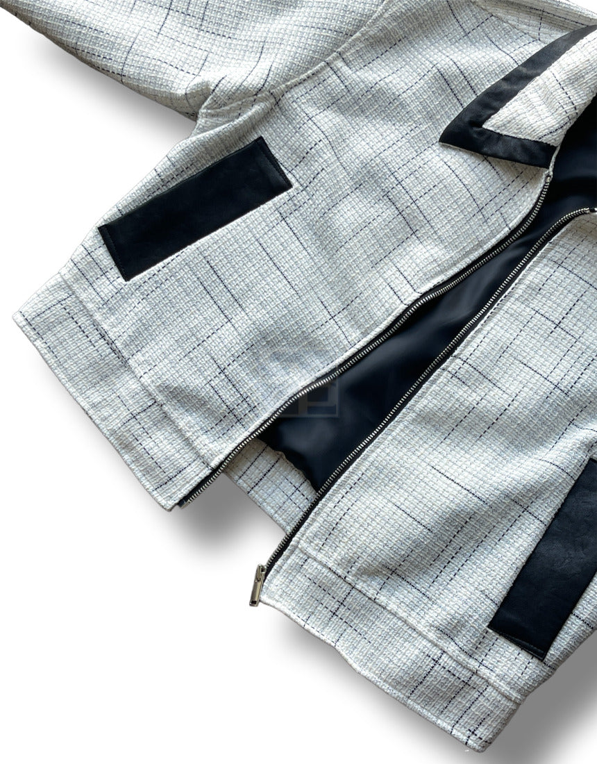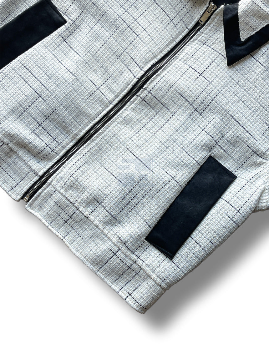 Leather Coloring Tweed Cropped Jacket Ivory